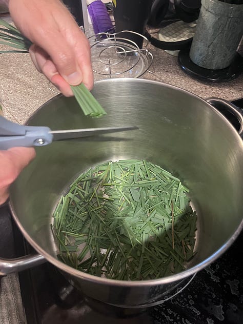 I like hydrosols best for leaves. This past weekend, we did 3 separate pots of lemongrass, scrub bay, and wax myrtle leaves. Flowers can be a little trickier. They smell so beautiful on the plant and in the air, but can turn musty in the pot. Still, experiment! But leaves seem to give more freely, and the scent stays clean and light. Leaves with high volatile oil content will work best. A good trick is to crush them in your hand and feel for the oils, notice the strong smell: lemon balm, mint, rosemary, pine, spruce.