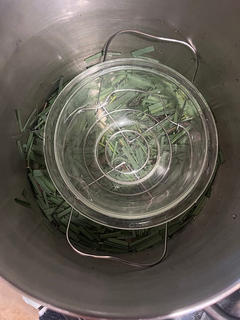 That’s what hydrosol-making is for me. An exit-ramp, a way to step off the ride. A lazy thing to make, perfect for summer. A set-it-and-forget-it type preparation: get it going, then sit on the porch.